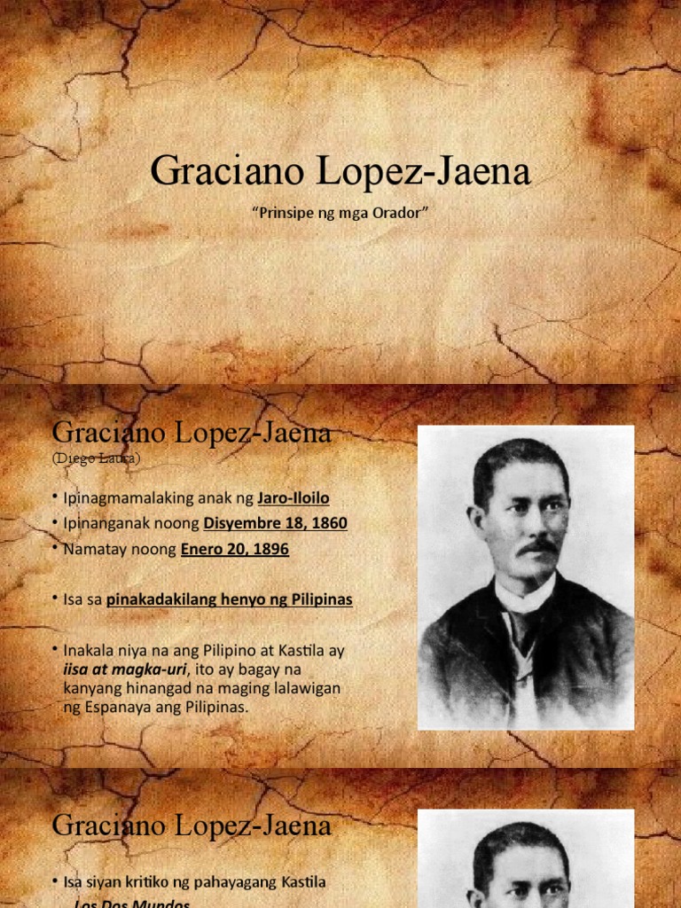 Animation of graciano lopez jaena. Isang tinitingalang propagandista si Graciano Lopez Jaena ay lalong kilala sa tawag na Prinsipe ng mga Orador. Fray Botod By Graciano Lopez Jaena 19n02dj2534v.