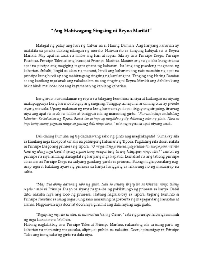 Ang anak ng pulubi magiging pulubi. Magiging prinsipe at prinsesa ka naman kung isa kang anak ng hari. Ang prinsipe ay mabait sa lahat ng mamamayan at mga alipin.